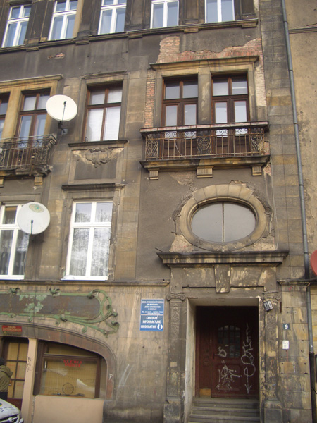 Das Haus auf dem ehemaligen Synagogenplatz in Bytom/Beuthen, in dem sich laut Zeitzeugen nach dem Brand der Synagoge 1938 eine Betstube befand.